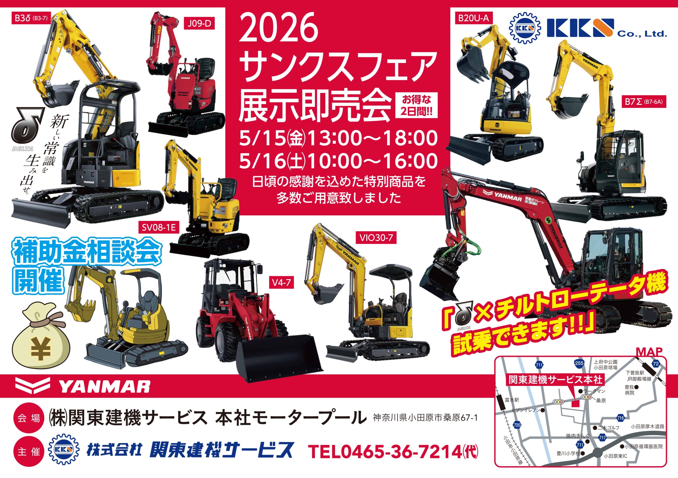 今年はチルトローテータ機の試乗ブースや建設機械の導入に使える各種補助金の相談会も開催いたします。