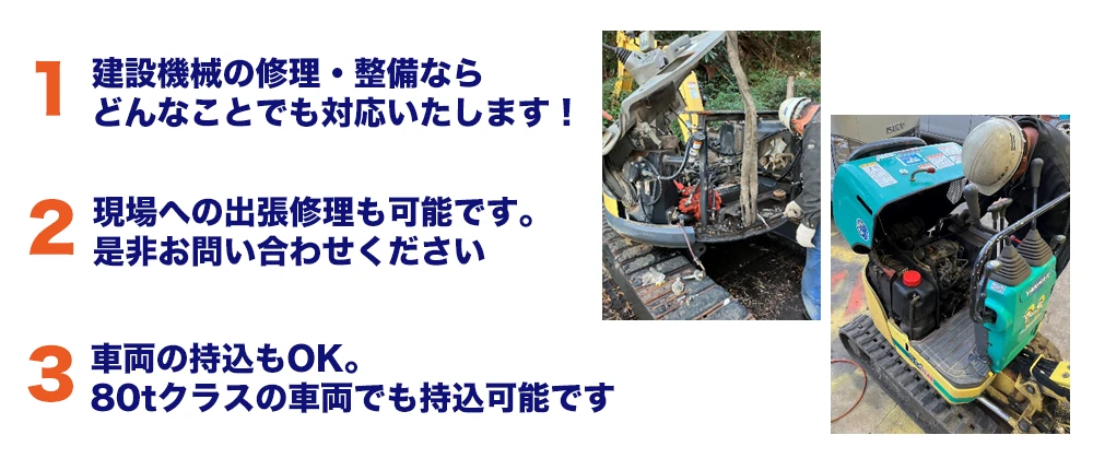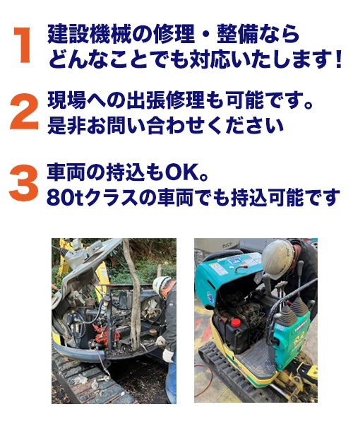 関東建機サービスの建機・重機修理の3つの特徴